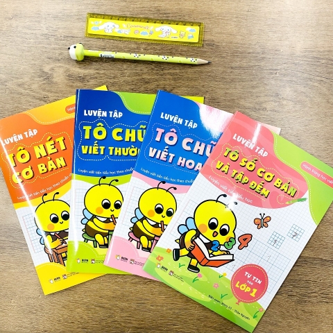 Sách Luyện tập tô nét cơ bản + Luyện tập tô chữ viết thường + Luyện tập tô chữ viết hoa + Luyện tập tô số cơ bản và tập đếm