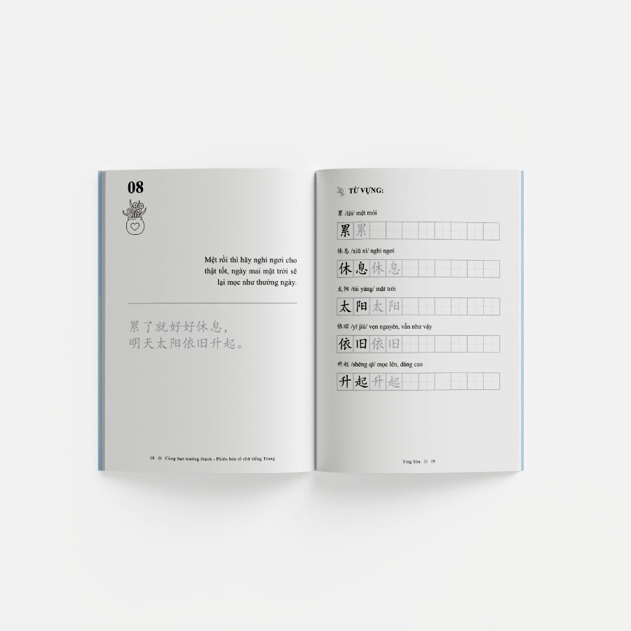 Điểm đặc biệt của phiên bản này chính là phần tô chữ tiếng Trung được thiết kế cẩn thận, giúp bạn dễ dàng ghi nhớ nét chữ và cảm nhận được từng đường cong mềm mại của chữ Hán. Thông qua việc luyện tập tô chữ, bạn sẽ dần dần làm quen với cấu trúc chữ, cải thiện khả năng viết tay một cách tự nhiên. Đặc biệt: không chỉ dừng lại ở việc luyện viết, cuốn sách còn giúp bạn học từ vựng hiệu quả nhờ phần take-note từ vựng đi kèm từng câu trích dẫn ý nghĩa. Bạn có thể dễ dàng học riêng lẻ từng từ và ghi nhớ sâu hơn qua ngữ cảnh ví dụ thực tế trong sách.