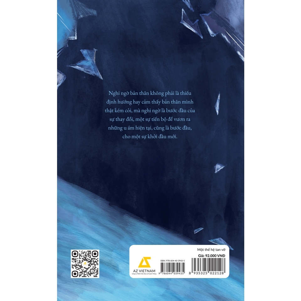 Nếu ví “MỘT THẾ HỆ TAN VỠ” tựa như những bản nhạc, thì có lẽ những bản nhạc này đã bị nhuốm một màu đượm buồn, sẽ có những nốt trầm hoang hoải màu tuyệt vọng, cũng sẽ có những nốt cao thanh thoát phảng phất sự hy vọng xa xăm. Cuốn sách ra đời với mong muốn sẻ chia những hoang mang trong quá trình (mới chớm) trưởng thành, chữa lành những thương tổn tới những ai đang cần sự thấu cảm.