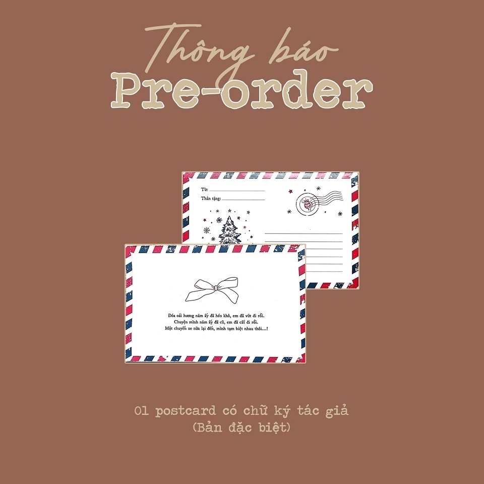 - Bản đặc biệt:1 bookmark + 1 postcard có lời đề tặng + chữ kí tác giả