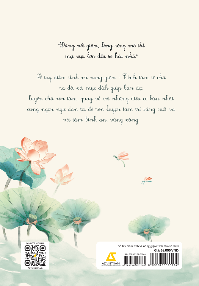 Thấu hiểu được điều ấy, Sổ tay điềm tĩnh và nóng giận - Tĩnh tâm tô chữ ra đời với mục đích giúp bạn đọc luyện chữ rèn tâm, quay về với những điều cơ bản nhất cùng ngôn ngữ dân tộc để rèn luyện tâm trí sáng suốt và nội tâm bình an, vững vàng. Phiên bản này tổng hợp ngắn gọn, chắt lọc tinh túy những lời dạy vàng ngọc thiết thực và gần gũi trong cuộc sống giúp bạn đọc có thể kịp thời bình tâm và hành động một cách lí trí. Chỉ cần ngồi xuống, lật giở ngẫu nhiên một trang giấy và đưa bút tô lại những lời dạy ấy thôi cũng đủ giúp tâm hồn của bạn được thanh lọc và điềm tĩnh trở lại.