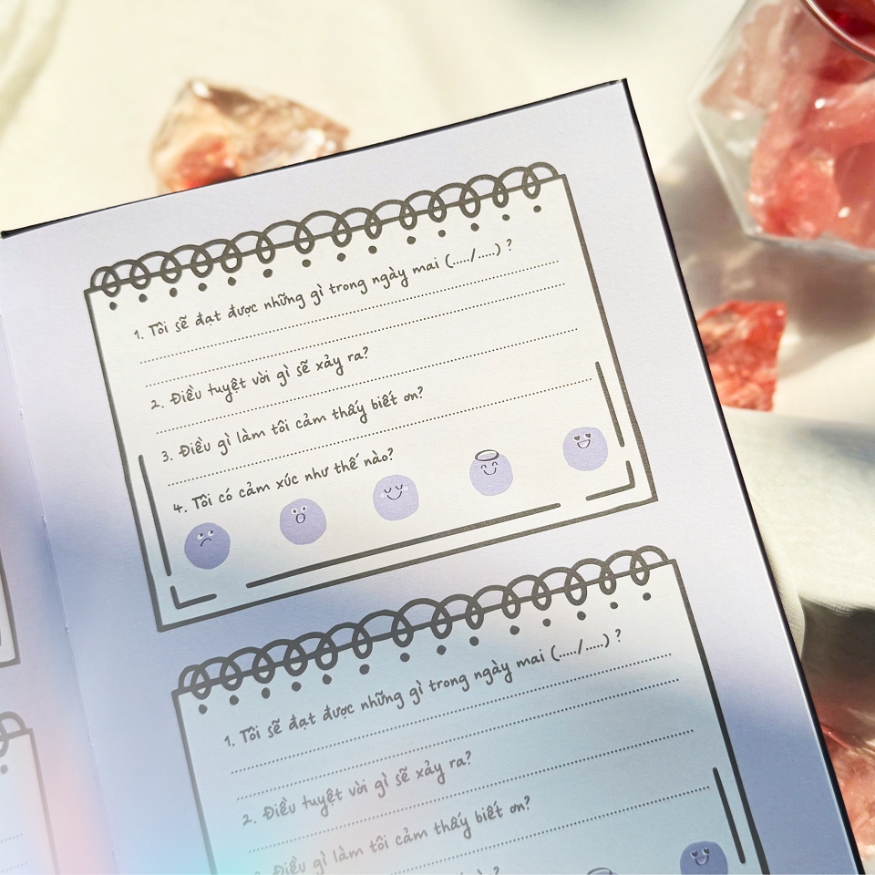 Không chỉ vậy, trong cuốn sổ này còn đặc biệt có thêm 4 loại nhật ký được trình bày theo hình thức 1 tháng, giúp bạn làm quen và bước đầu hình thành vòng tròn tuần hoàn tích cực trong lối sống của bản thân.