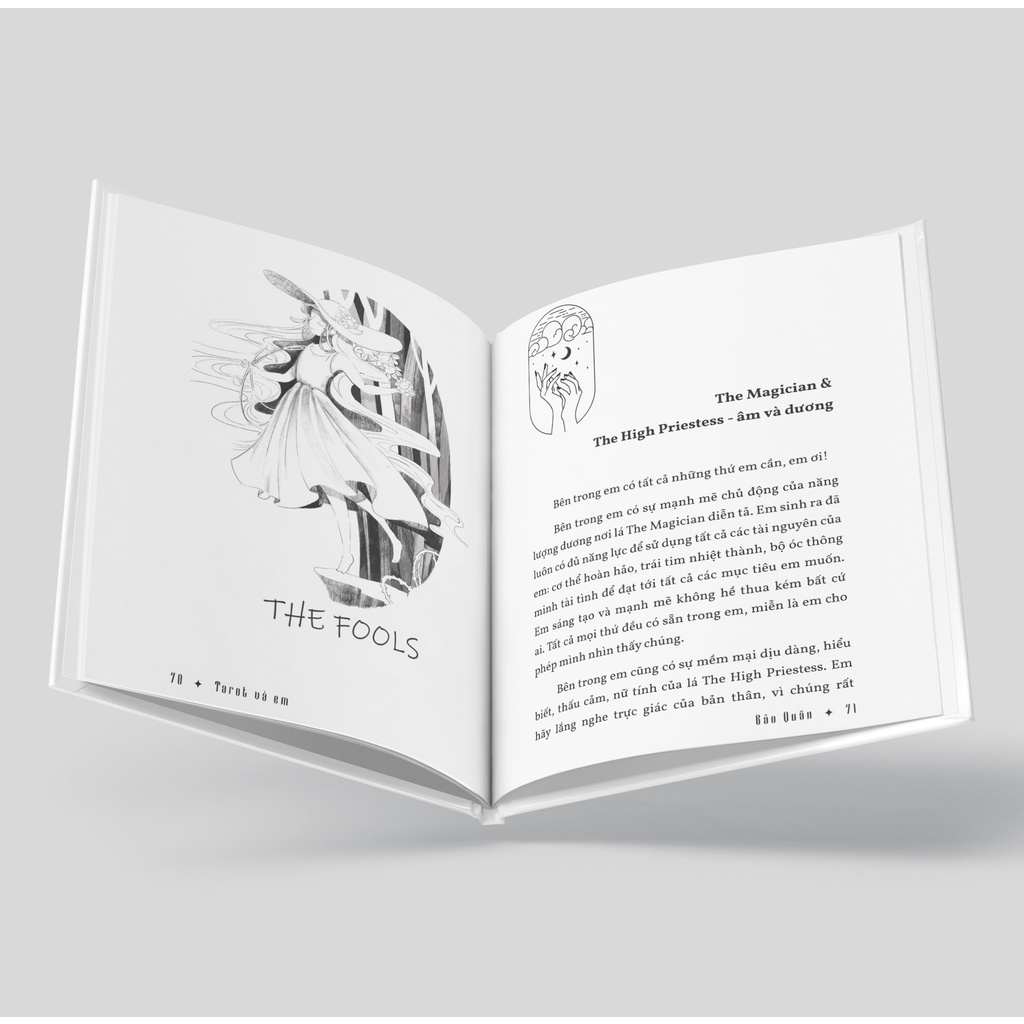 Trong Tarot và em, những lá bài Tarot trở nên sống động như những người bạn ta gặp gỡ trong cuộc sống. Mỗi lá có câu chuyện riêng, chúng không chỉ là điềm báo tương lai mà còn là một tập hợp những triết lý nhân sinh sâu sắc.