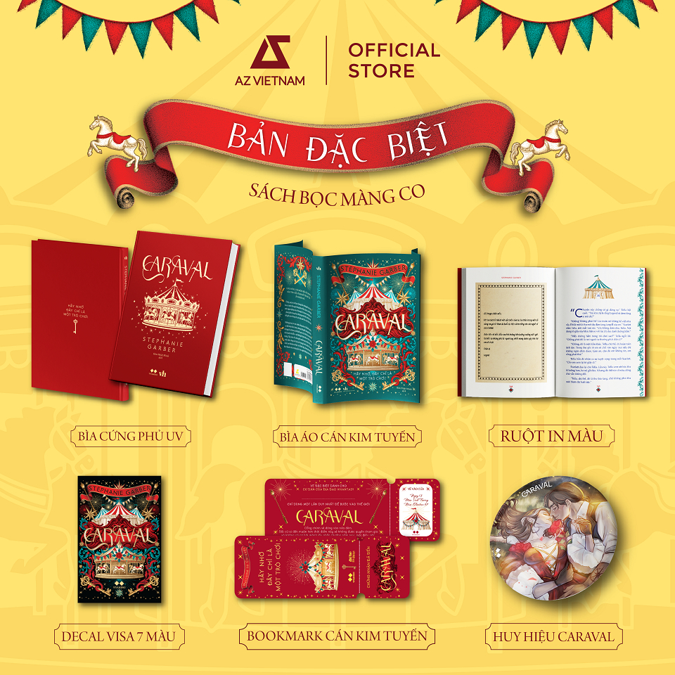 Lần đầu tiên tại Việt Nam, bộ truyện bestseller quốc tế Caraval của Stephanie Garber sẽ được trình bày trong một phiên bản đặc biệt, in 4 màu toàn bộ, nhằm tái hiện sống động nhất thế giới kỳ ảo, quyến rũ và đầy mê hoặc của cuộc chơi vĩ đại.